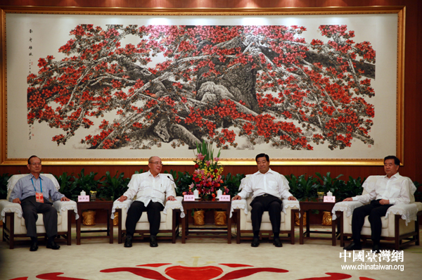 7月9日,中共中央政治局常委、全國政協(xié)主席賈慶林在廣州會見中國國民黨榮譽主席吳伯雄及應(yīng)邀參加第六屆兩岸經(jīng)貿(mào)文化論壇的兩岸各界人士。(中國臺灣網(wǎng) 鐘寶華 攝)