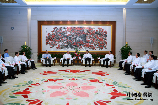 中國臺灣網(wǎng)7月9日廣州消息 中共中央政治局常委、全國政協(xié)主席賈慶林7月9日在廣州會見中國國民黨榮譽主席吳伯雄及應(yīng)邀參加第六屆兩岸經(jīng)貿(mào)文化論壇的兩岸各界人士。(記者 鐘寶華)