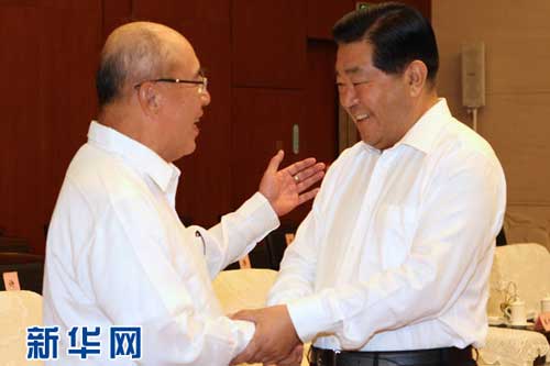 中共中央政治局常委、全國(guó)政協(xié)主席賈慶林9日下午在廣州會(huì)見了中國(guó)國(guó)民黨榮譽(yù)主席吳伯雄和應(yīng)邀出席第六屆兩岸經(jīng)貿(mào)文化論壇的兩岸各界人士。