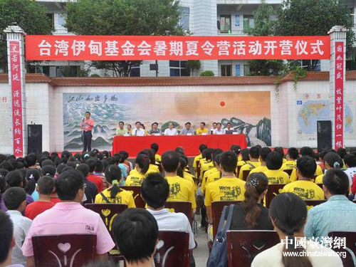 中國臺(tái)灣網(wǎng)7月15日通江消息 日前,臺(tái)灣伊甸社會(huì)福利基金會(huì)暑期夏令營開營儀式在巴中市通江縣火炬中學(xué)舉行,拉開了臺(tái)灣志工團(tuán)在火炬中學(xué)的支教行動(dòng)序幕。臺(tái)灣伊甸社會(huì)福利基金會(huì)主任朱永祥,巴中市委統(tǒng)戰(zhàn)部副部長(zhǎng)、市人民政府民宗事務(wù)管理辦公室主任彭朝家,通江縣委常委、統(tǒng)戰(zhàn)部長(zhǎng)、縣總工會(huì)主席張峨,縣委統(tǒng)戰(zhàn)部副部長(zhǎng)、縣臺(tái)辦主任李通平出席開營儀式。儀式由通江縣教育文化體育局副局長(zhǎng)董開平主持。