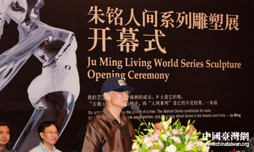 開幕式現(xiàn)場,朱銘發(fā)表感言。(中國臺灣網(wǎng) 董潔 攝)