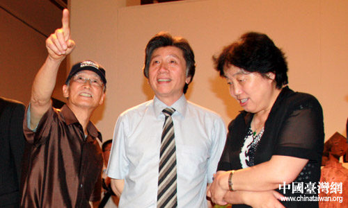 朱銘向與會嘉賓介紹自己的作品。(中國臺灣網(wǎng) 董潔 攝)