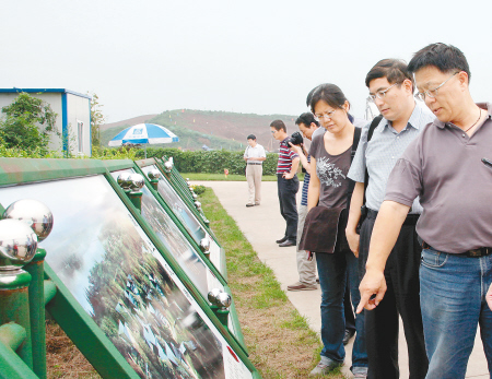 臺(tái)灣媒體記者觀看世園會(huì)規(guī)劃展板。