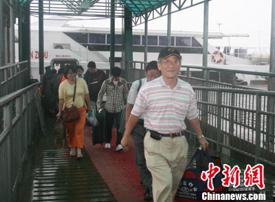 隨同“泉州輪”抵達(dá)石井碼頭的23名臺(tái)胞在泉州邊檢官兵的幫助下,順利登陸。