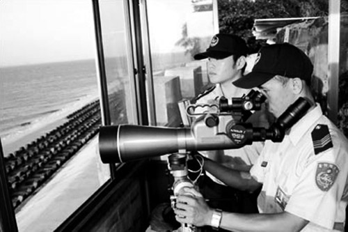 有學者建議兩岸可以太平島為基地共同守護南海。圖為島上的“海巡署”人員。圖片來源:國際在線