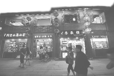 入了街,先來找杯奶茶喝喝!懊穪碚也琛、“我來自臺北”、“味覺禪風”等幾家別致的鋪面,一律小巧潔凈的店堂,有的整面墻至天花板繪成一株遒勁的墨梅,在精致的玻璃茶案下壓幾瓣干花,一派古風遺韻的雅致;有的則是一徑的黑墻,僅以圖形詭奇的淺褐玻璃板飾面,盡顯現(xiàn)代風格的調(diào)調(diào)。