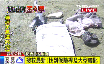 中國(guó)臺(tái)灣網(wǎng)10月24日消息 據(jù)臺(tái)灣TVBS電視臺(tái)報(bào)道,臺(tái)灣搜救隊(duì)24日持續(xù)搜救蘇花公路上失聯(lián)的創(chuàng)意旅行社21人(其中有19名大陸游客)。24日中午的最新進(jìn)展是,搜救人員找到了疑似大客車(chē)前方保險(xiǎn)桿、插著鑰匙的油箱蓋、小孩洋裝和防火板。