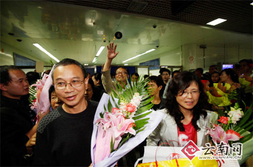 在云南省國際旅行社拉起的“歡迎回家”的大幅標(biāo)語下,在鮮花簇?fù)、鄉(xiāng)音問候下,曾受困于臺灣蘇花公路113到114公里處的48名云南游客昨晚23時20分乘坐由臺北飛往昆明的3U8958次航班,順利抵達(dá)昆明機場。據(jù)臺灣觀光部門統(tǒng)計,在臺灣遭遇塌方事故的大陸游客,除20人尚未尋獲,其余人員均已脫困,其中164人已離開臺灣返回大陸,另外85名游客將推遲離臺以繼續(xù)走完行程。