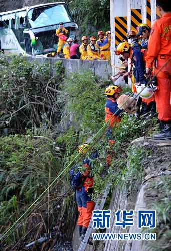 10月24日,救援人員在蘇花公路附近搜救。 新華社發(fā)