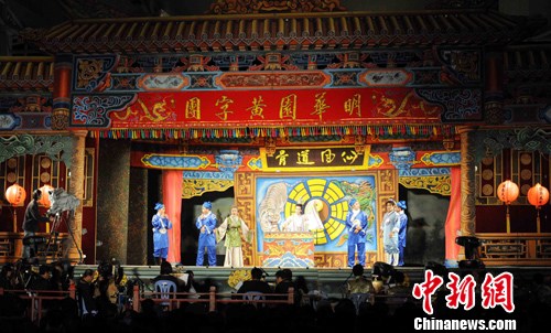 隨著一場以現(xiàn)代光影技術(shù)演繹,華美富麗的傳統(tǒng)歌仔戲17日晚在福建漳州上演,為期3天的海峽兩岸歌仔戲藝術(shù)節(jié)接近了尾聲。