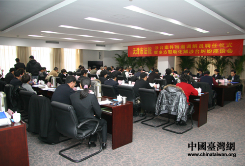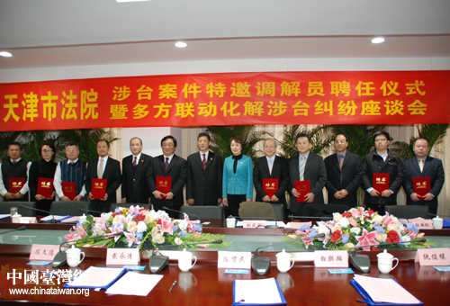 中國(guó)臺(tái)灣網(wǎng)12月7日天津消息 天津市高級(jí)人民法院12月6日舉行涉臺(tái)案件特邀調(diào)解員聘任儀式,并召開多方聯(lián)動(dòng)化解涉臺(tái)糾紛座談會(huì),受聘擔(dān)任涉臺(tái)案件特邀調(diào)解員的9名臺(tái)胞正式上崗。天津臺(tái)胞、臺(tái)企協(xié)會(huì)以及天津市臺(tái)辦、區(qū)縣臺(tái)辦代表在座談會(huì)上,對(duì)天津法院推出的依法保護(hù)臺(tái)胞臺(tái)資企業(yè)合法權(quán)益一系列舉措給予充分肯定,對(duì)全市法院涉臺(tái)審判工作以及涉臺(tái)審判協(xié)調(diào)機(jī)制提出中肯的意見和建議。
