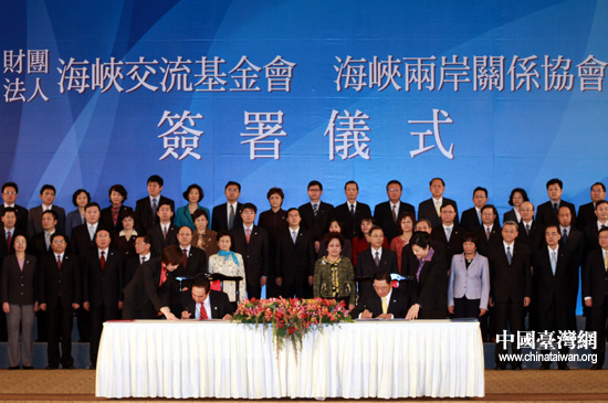 中國臺灣網(wǎng)12月21日臺北消息 兩岸兩會領(lǐng)導(dǎo)人第六次會談21日在臺北舉行。經(jīng)過一個上午的會談,當(dāng)日下午2點(diǎn)30分,海協(xié)會會長陳云林和;鶗麻L江丙坤正式簽署《海峽兩岸醫(yī)藥衛(wèi)生合作協(xié)議》。