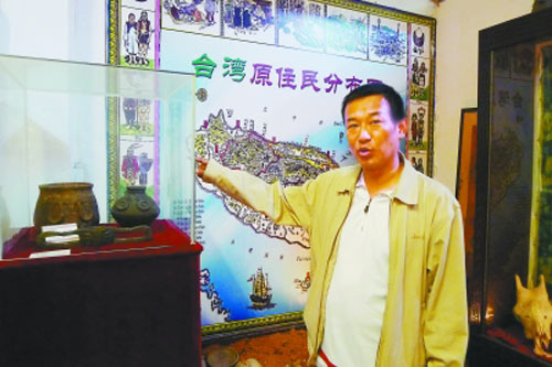 在鼓浪嶼晃巖路上,有一座“百年臺灣”館。近萬件的文物讓游客仿佛進入臺灣歷史的時空隧道。這家博物館的主人就是來自臺灣的洪明章(如圖)。創(chuàng)辦之初,連他自己也沒想到,“百年臺灣”竟然成為大陸第一座臺灣人創(chuàng)辦的私人博物館。
