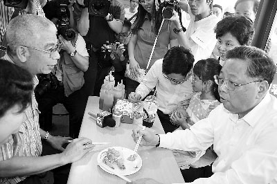 5月5日至10日,黃小晶省長(zhǎng)率福建省經(jīng)貿(mào)文化交流團(tuán)赴臺(tái)“走親訪(fǎng)友做生意”,這是他在臺(tái)南蚵蠣煎小吃店與當(dāng)?shù)孛癖娫?huà)家常。陳榮富 攝