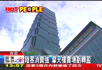 中國(guó)臺(tái)灣網(wǎng)1月2日消息 據(jù)臺(tái)灣TVBS電視臺(tái)報(bào)道,臺(tái)北101董事長(zhǎng)林鴻明在接受訪問(wèn)時(shí)表示,大陸游客的消費(fèi)能力很高,占臺(tái)北101大樓賣場(chǎng)總消費(fèi)額的12%,促使今年臺(tái)北101大樓賣場(chǎng)的業(yè)績(jī)一路飄紅,6年來(lái)首度轉(zhuǎn)虧為盈。他表示若以后開(kāi)通大陸游客自由行,臺(tái)北101大樓賣場(chǎng)的業(yè)績(jī)會(huì)翻倍上升。
