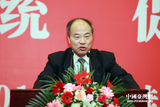 南京大學(xué)臺(tái)研所所長(zhǎng)崔之清代表自己所在小組向大會(huì)作報(bào)告。(中國(guó)臺(tái)灣網(wǎng) 鐘寶華 攝)