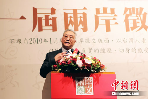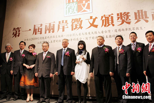 由兩岸三地媒體合辦的第一屆兩岸征文,21日在臺(tái)北舉辦頒獎(jiǎng)典禮。