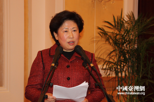 招待會上,中共中央統(tǒng)戰(zhàn)部副部長尤蘭田代表中央統(tǒng)戰(zhàn)部和杜青林部長,發(fā)表了熱情洋溢的講話。她充分肯定了黃埔軍校同學(xué)會在過去一年發(fā)揮自身優(yōu)勢,對臺工作所取得的顯著成績。她表示,希望在新的一年里,黃埔軍校同學(xué)會繼續(xù)遵循中央對臺工作的大政方針,牢牢把握兩岸關(guān)系和平發(fā)展主題,立足自身特點和優(yōu)勢,拓展思路,構(gòu)建載體,打造亮點,培育品牌,提升效能,廣泛團結(jié)海內(nèi)外黃埔同學(xué)和親友,為開創(chuàng)兩岸關(guān)系和平發(fā)展新局面、推進祖國和平統(tǒng)一大業(yè)作出新的貢獻。