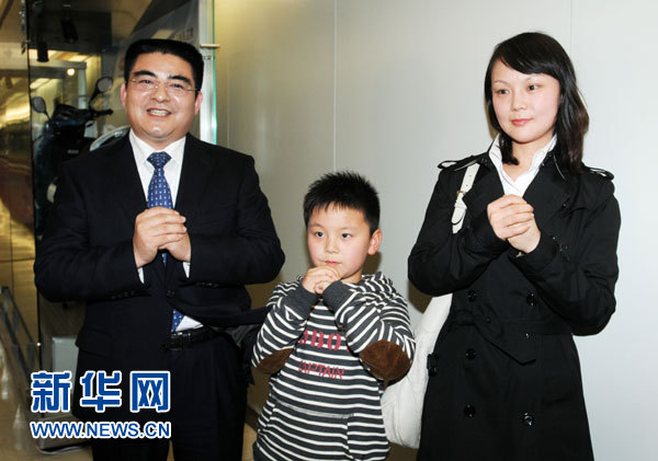 1月26日,陳光標(biāo)(左)攜妻兒抵達(dá)臺灣桃園機(jī)場。當(dāng)日,大陸著名慈善家陳光標(biāo)抵達(dá)臺灣,與他同行的還有50多名大陸企業(yè)家。按計劃,他們于27日開始在臺灣9個縣市發(fā)放“感恩紅包”,每個紅包從1萬新臺幣到5萬新臺幣不等,價值總計約1.1億元人民幣。 新華社發(fā)