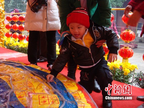 作為閩臺(tái)兩地非常古老、極具閩南特色的傳統(tǒng)民俗文化活動(dòng),乞龜寓意著一年的平安、幸福。由泉州、臺(tái)灣澎湖兩地聯(lián)手制作重約3.5萬斤的大“米龜”被前來參加元宵乞平安龜祈;顒(dòng)的信眾圍個(gè)水泄不通,大家都想早點(diǎn)摸到大米龜,以祈得一年的好運(yùn)道。