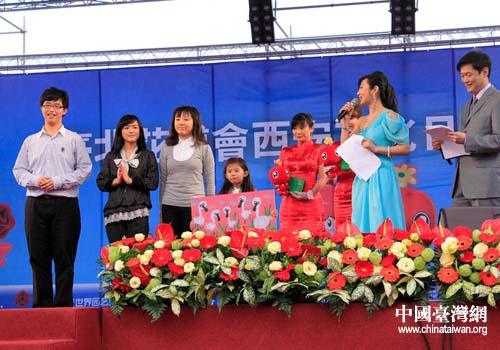臺(tái)北花博志愿者為西安世園會(huì)送祝福(陜西省臺(tái)辦 張群莉 攝)