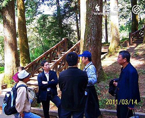 路兩旁,生長(zhǎng)著高大的檜樹(shù)、杉樹(shù),最壯的也不過(guò)半米粗,一律筆桿條直往上長(zhǎng),像要爭(zhēng)著把天捅破似的。王導(dǎo)告訴大家,這里的原始林木幾乎都被日本人砍走了,眼前這些都是次生林,也有人工栽種的。偶爾可以看到巨大的樹(shù)根,直徑三四米平平常常,讓人想得出當(dāng)年是什么樣子。于是,山行道上,又多了個(gè)沉重的話題。由于剛在北京和重慶辦過(guò)臺(tái)灣少數(shù)民族抗日展,我就義務(wù)當(dāng)了回解說(shuō),向大家介紹臺(tái)灣少數(shù)民族各族群抗日的經(jīng)歷,大家聽(tīng)得很認(rèn)真,長(zhǎng)城雜志編輯部主任李浩還追著我問(wèn)了許多。我真怕如此沉重的話題掃了大家的性致,但好像并沒(méi)有影響什么。畢竟這是中華民族共同的一段記憶,我只是比他們略略多知道了一點(diǎn)而已! (lái)到神木車(chē)站,我走在前面,想第一眼看到那兩株高高聳立的神木,但是令我失望了,神木已于1997夏天倒了。怎么會(huì)是這樣?1995年秋天我來(lái)的時(shí)候還在這里照過(guò)像,16年后舊地重游,卻成了令一番景象,“樹(shù)猶如此,人何以堪!”