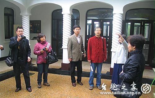 在林語堂故居庭院聽導(dǎo)引員講林語堂。