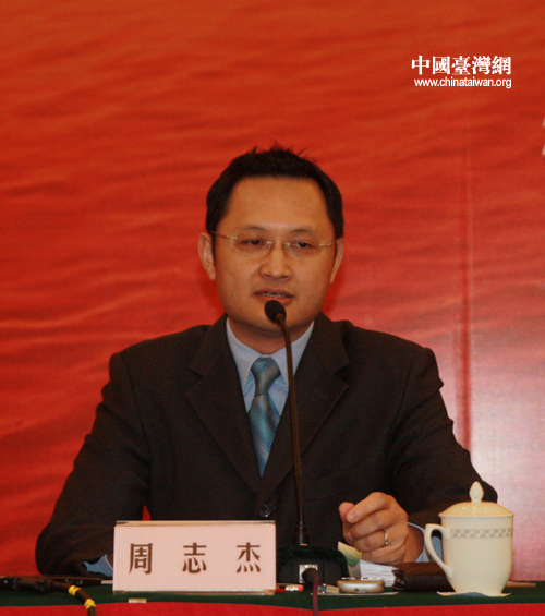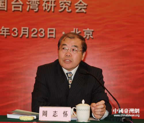 全國(guó)臺(tái)灣研究會(huì)執(zhí)行副會(huì)長(zhǎng)兼秘書長(zhǎng)周志懷致開幕辭。(中國(guó)臺(tái)灣網(wǎng)記者 李杰 攝)