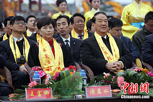 宋楚瑜(右一)5日在山西洪洞二十一屆大槐樹尋根祭祖大典上。