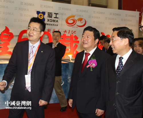 國務(wù)院臺(tái)灣事務(wù)辦公室副主任孫亞夫等領(lǐng)導(dǎo)在會(huì)后參觀廈工館。(中國臺(tái)灣網(wǎng) 高斯斯 攝)