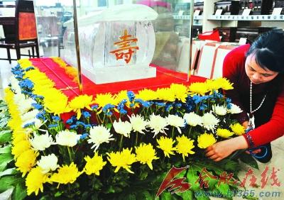 工作人員正在為安放劉銘傳遺骨的水晶棺布置鮮花