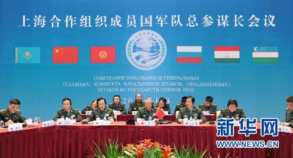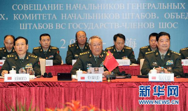 4月25日,上海合作組織成員國軍隊總參謀長會議在上海舉行。中央軍委委員、總參謀長陳炳德主持會議并做大會發(fā)言。 新華社記者王曄攝