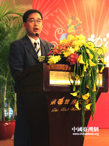 4月27日,臺灣中華動漫出版同業(yè)協(xié)進會秘書長高世椿在第七屆中國國際動漫節(jié)新聞發(fā)布會上講話。(中國臺灣網(wǎng) 李丹 攝)