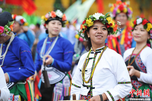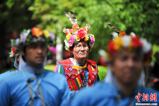 4月30日,2011中國(guó)昆明國(guó)際文化旅游節(jié)昆明狂歡節(jié)在春城昆明開幕。來自寶島臺(tái)灣的原住民族原舞者表演隊(duì)精彩亮相,受到游客的喜愛。中新社發(fā) 劉冉陽(yáng) 攝