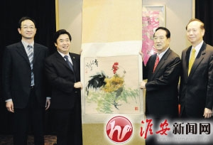 宋楚瑜代表親民黨對(duì)淮安經(jīng)貿(mào)代表團(tuán)赴臺(tái)訪問考察表示熱烈歡迎!翱吹絼泿磉@么多的淮安新老朋友,感到非常親切。”宋楚瑜說,“很多臺(tái)商朋友都跟我談起在淮安的投資情況,他們?cè)诨窗驳玫搅撕芎玫恼疹,享受到了?yōu)質(zhì)高效的服務(wù),特別是101%服務(wù)讓他們感動(dòng)。上海世博會(huì)舉辦之后,更多的臺(tái)商擁入江蘇包括淮安投資,兩岸經(jīng)貿(mào)合作紅似火,淮安與臺(tái)灣的交流合作也迎來了新的機(jī)遇。”