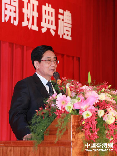 趙洪祝書(shū)記致辭并邀請(qǐng)臺(tái)灣大學(xué)生來(lái)浙江實(shí)習(xí)。(浙江省臺(tái)辦王健 攝)