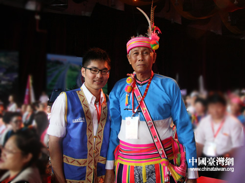 開幕式上身著阿美族民族服飾的臺(tái)灣嘉賓。(中國(guó)臺(tái)灣網(wǎng) 王曉蕊 攝)