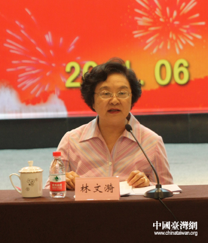 全國(guó)政協(xié)副主席、臺(tái)盟中央主席林文漪出席座談會(huì)并講話。(中國(guó)臺(tái)灣網(wǎng) 王怡然 攝)