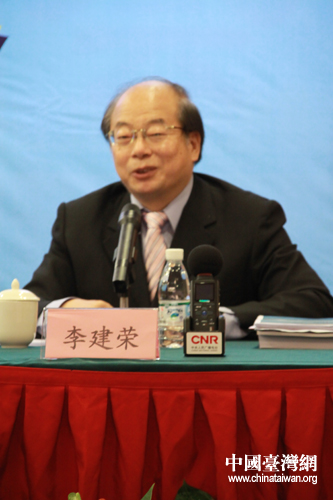 臺(tái)灣;鶗(huì)顧問、中華海峽兩岸客家文經(jīng)交流協(xié)會(huì)副理事長(zhǎng)李建榮先生回答記者提問。(中國(guó)臺(tái)灣網(wǎng) 馮江 攝)