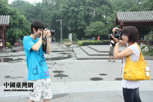 拍拍客男女主角:中國(guó)地質(zhì)大學(xué)王子碩&臺(tái)灣大學(xué)李曉蓉(中國(guó)臺(tái)灣網(wǎng) 李丹 攝)