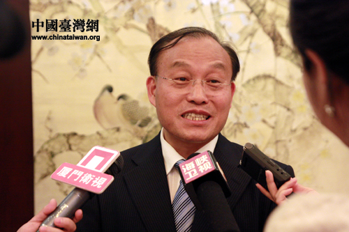 第四屆津臺(tái)投資合作洽談會(huì)暨2011天津·臺(tái)灣名品博覽會(huì)新聞發(fā)布會(huì)7月5日在津舉辦。臺(tái)北世貿(mào)中心副秘書長(zhǎng)黃文榮接受記者采訪。(中國(guó)臺(tái)灣網(wǎng) 馬迪 攝)
