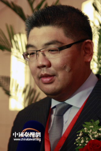7月7日,中國(guó)國(guó)民黨榮譽(yù)主席連戰(zhàn)的長(zhǎng)子連勝文在第四屆津臺(tái)投資合作洽談會(huì)項(xiàng)目簽約儀式現(xiàn)場(chǎng)接受媒體采訪(fǎng)。(中國(guó)臺(tái)灣網(wǎng) 馬迪 攝)