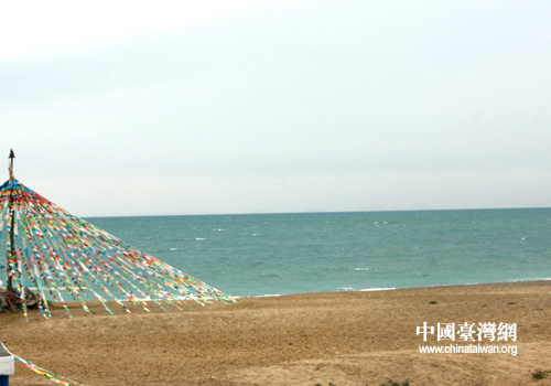 小雨中的青海湖仍不失碧藍(lán)本色。(中國(guó)臺(tái)灣網(wǎng) 楊云濤攝)