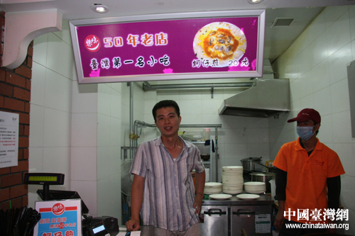 在臺(tái)灣50年歷史之久的蚵仔煎老店在前門臺(tái)灣街開鋪營(yíng)業(yè)。(中國(guó)臺(tái)灣網(wǎng) 于斯文 攝)
