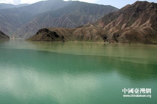站在黃南州隆務黃河大橋上,可以看到碧藍與濁黃黃河水的分界線,平靜的水面自動劃分出一個清晰的界限。在此,黃河成為真正意義上黃水河。(中國臺灣網(wǎng) 楊云濤攝)