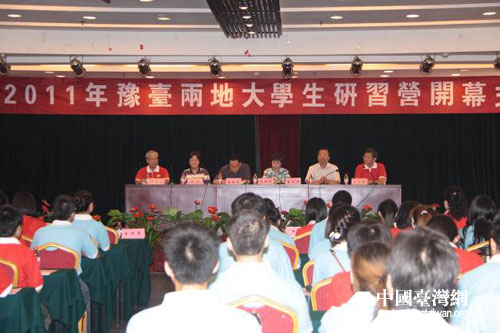 中國臺(tái)灣網(wǎng)7月15日鄭州消息 7月15日,由河南省臺(tái)辦、省臺(tái)聯(lián)主辦,以“走進(jìn)天地之中、探尋‘四大古都’”為主題的2011年豫臺(tái)兩地大學(xué)生研習(xí)營在鄭州舉行開營儀式。河南省臺(tái)辦主任宋麗萍宣布“2011年豫臺(tái)兩地大學(xué)生研習(xí)營正式開營”并向營員授營旗。來自臺(tái)灣長榮大學(xué)、嘉義大學(xué)和華北水利水電學(xué)院的師生百余人參加開營儀式。