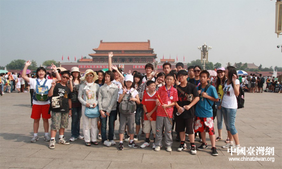 雖然正值三伏暑熱,來到天安門廣場(chǎng)的同學(xué)們卻都很興奮?吹秸把雒飨年(duì)伍如此宏大,活潑的臺(tái)灣女生不禁感嘆:“哇,比臺(tái)灣的偶像開演唱會(huì)的人還要多耶”,引得大家一陣歡笑。同學(xué)們爭(zhēng)先恐后的拍照,并不時(shí)驚呼:“哇!我來過天安門了耶!”隨行的臺(tái)灣老師康春菊表示,“只有在課本、電視上才能看到的天安門真實(shí)的出現(xiàn)在眼前,只能用‘感動(dòng)’來形容”。