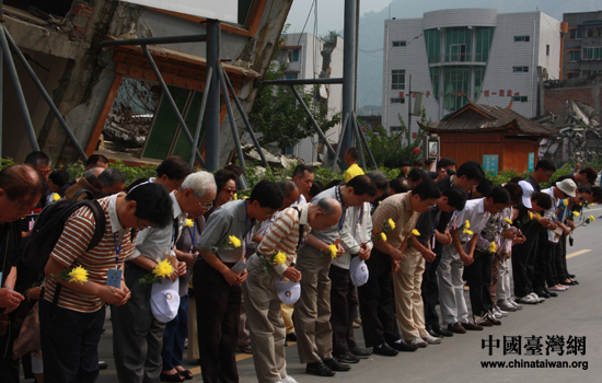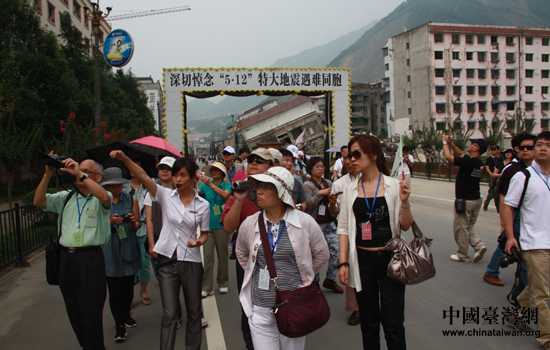 中國(guó)臺(tái)灣網(wǎng)7月16日北川消息 今年是“5·12”特大地震發(fā)生三周年,17日上午,情系巴蜀——兩岸文化聯(lián)誼行的嘉賓們來(lái)到北川地震遺址,深切悼念在“5·12”特大地震中罹難的同胞。(記者 趙輝)