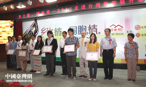2011年7月20日,“鄉(xiāng)土情 同胞情—2011走進臺灣攝影展” 揭幕剪彩儀式上,獲獎的六位臺灣同學取得了證書。(中國臺灣網(wǎng) 楊永青 攝)