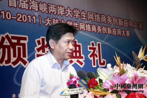 中國臺灣網(wǎng)7月28日北京消息 7月28日,由中國互聯(lián)網(wǎng)協(xié)會和中國臺灣網(wǎng)共同主辦,中國建設(shè)銀行主協(xié)辦的建行“e路通”杯首屆海峽兩岸大學(xué)生網(wǎng)絡(luò)商務(wù)創(chuàng)新應(yīng)用大賽暨第四屆大陸大學(xué)生網(wǎng)絡(luò)商務(wù)創(chuàng)新應(yīng)用大賽大陸賽區(qū)總決賽頒獎典禮在北京交通大學(xué)隆重舉行。國新辦網(wǎng)絡(luò)新聞協(xié)調(diào)局副局長方楠在致辭中表示,兩岸大學(xué)生加強交流與協(xié)作,將共同引領(lǐng)和推動網(wǎng)絡(luò)商務(wù)應(yīng)用的創(chuàng)新與發(fā)展。